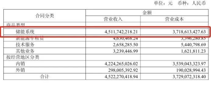 From the classification of operating revenue, revenue from energy storage systems was 4.512 billion yuan, accounting for the highest proportion.