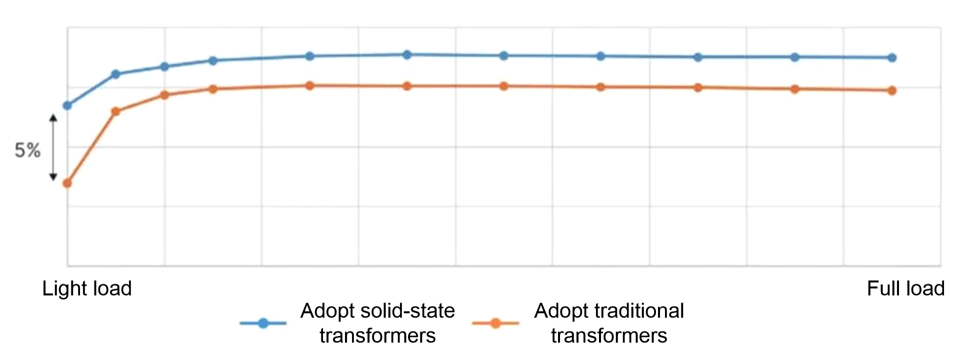 Under light load, SST efficiency is 5% higher than traditional transformers